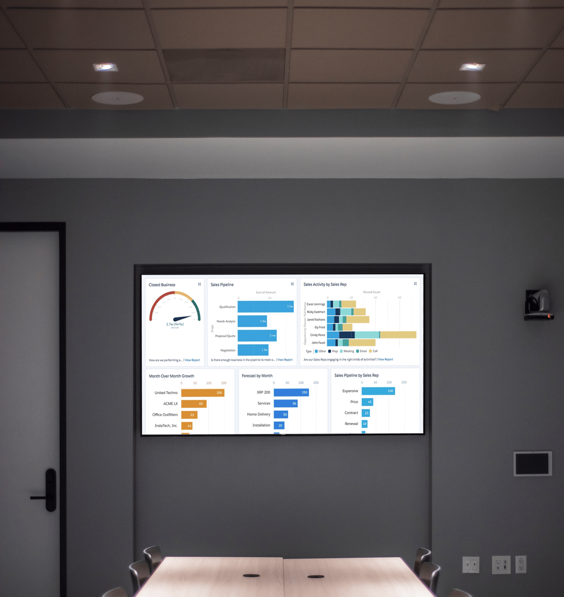 He needed an easy way to display Salesforce dashboards on the TV screens hung around the office and on offsite devices.